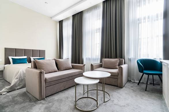 Главное, что при оптимальном бюджете удалось полностью обновить внешний вид номеров без потери качества. Получилось современно, надежно и ровно то, что нужно для интенсивной гостиничной эксплуатации.