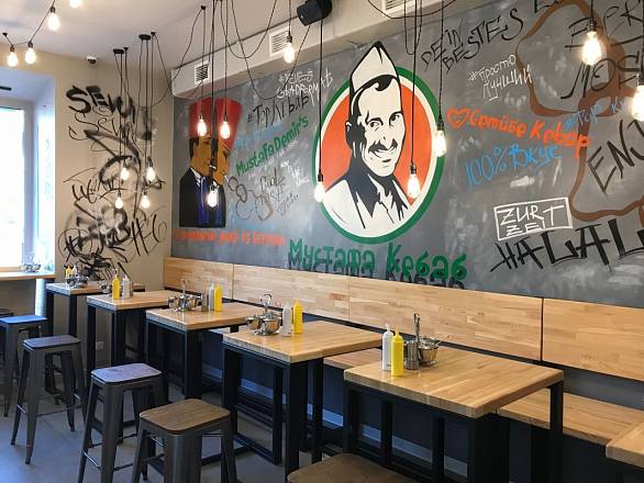 Для небольшого кафе восточной кухни с современным дизайном - Мустафа Кебаб, относящегося к большой международной сети с центральным офисом в Берлине, наша компания изготовила большое количество качественной и функциональной мебели, удобной для быстрых перекусов вкусными аппетитными донерами.